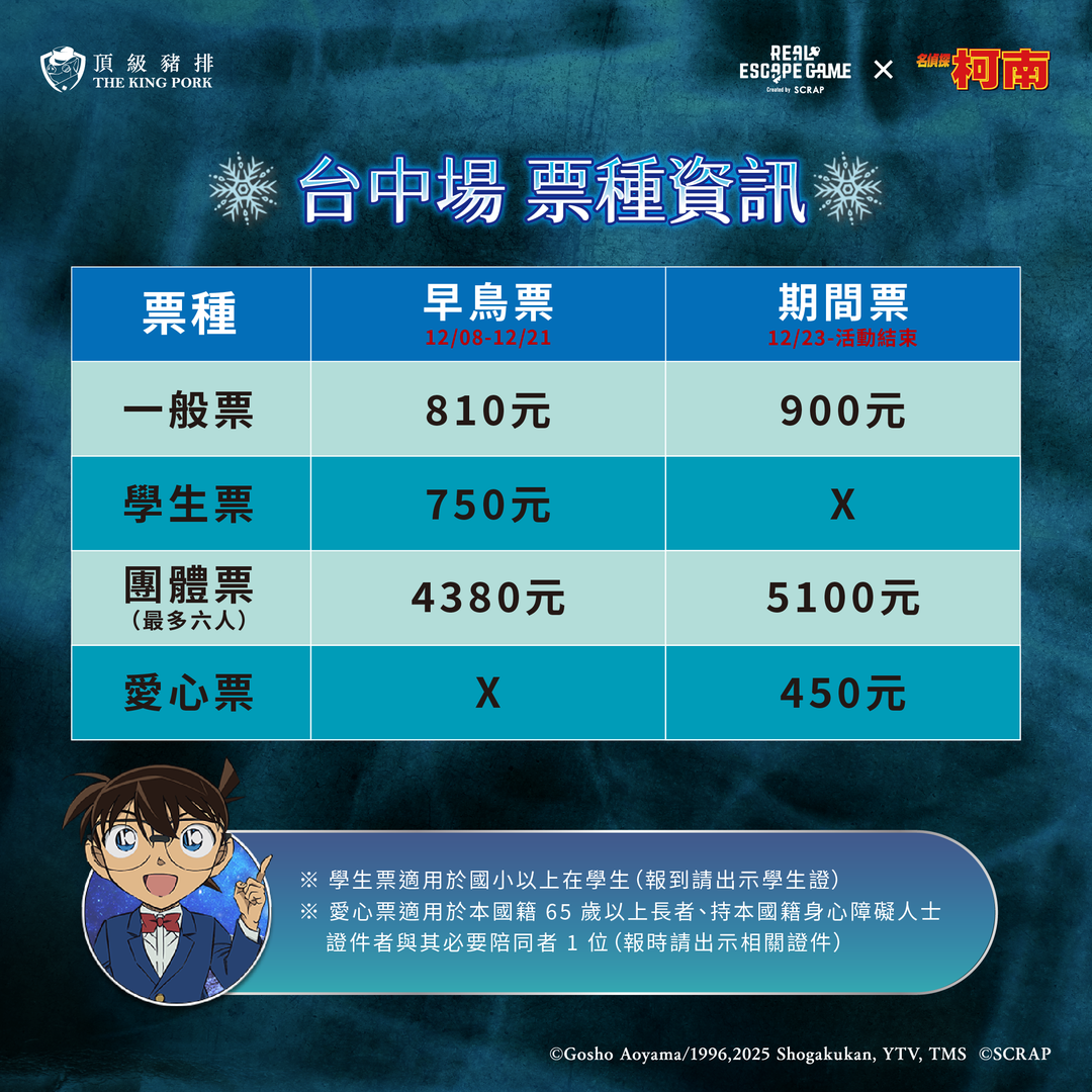 ※團體優惠票須以整組團體為單位申請退票,無法僅退部分人數;個人票則可以單張申請退票,不須連同同一訂單內其他票券一併退票。若有退票疑問歡迎私訊【名偵探柯南大型實境解謎遊戲-逃脫!殘像的訊號】粉絲專頁。敬請儘早詢問,以利於退票期限內提出申請,避免造成您的損失。
